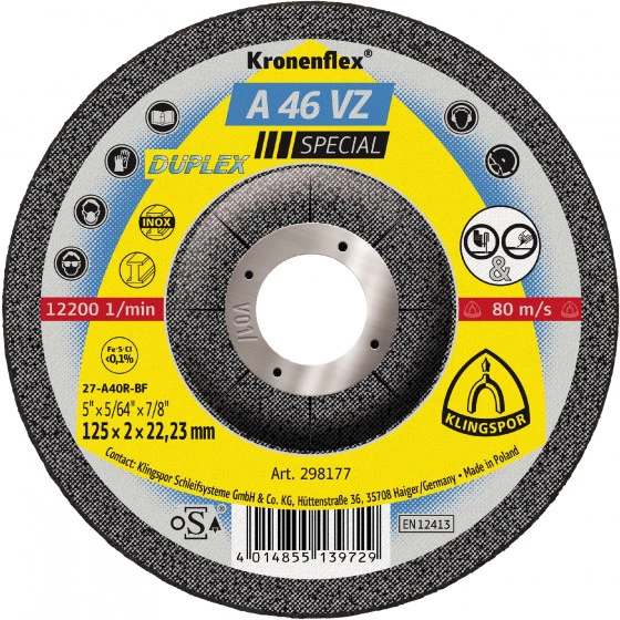 Extra fin pour tronçonner et meuler dans la plus grande sécurité avec un seul disque. Le A 46 VZ Duplex est idéal pour la coupe et le meulage des tubes, profilés et tôles minces.