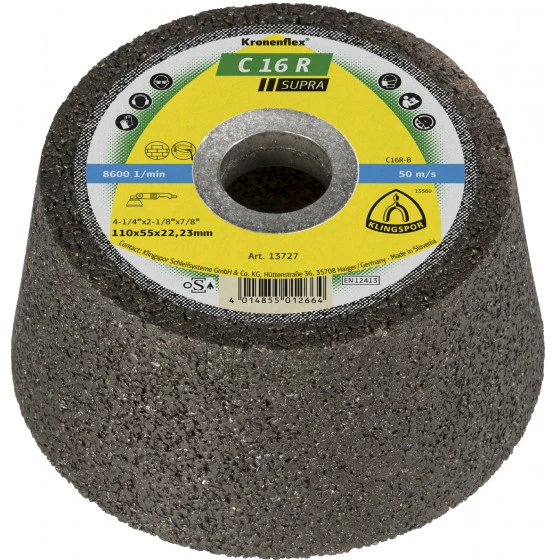 Meule boisseau pour le meulage grossier des surfaces et des chants sur la pierre et autres matières minérales. Gros enlèvement et longue durée de vie.