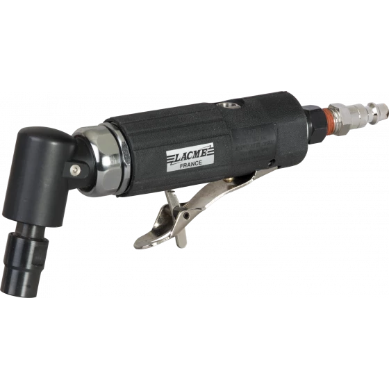 Modèle professionnel 105° – Compacte et puissante – Puissance 245 Watts – 15.000 tr/min – Renvoi d’angle à 105° (pour protéger plus la main) – Mandrin à pinces Ø 6 mm – Sécurité à la gâchette – Corps avec revêtement isolant – 2 clés de serrage